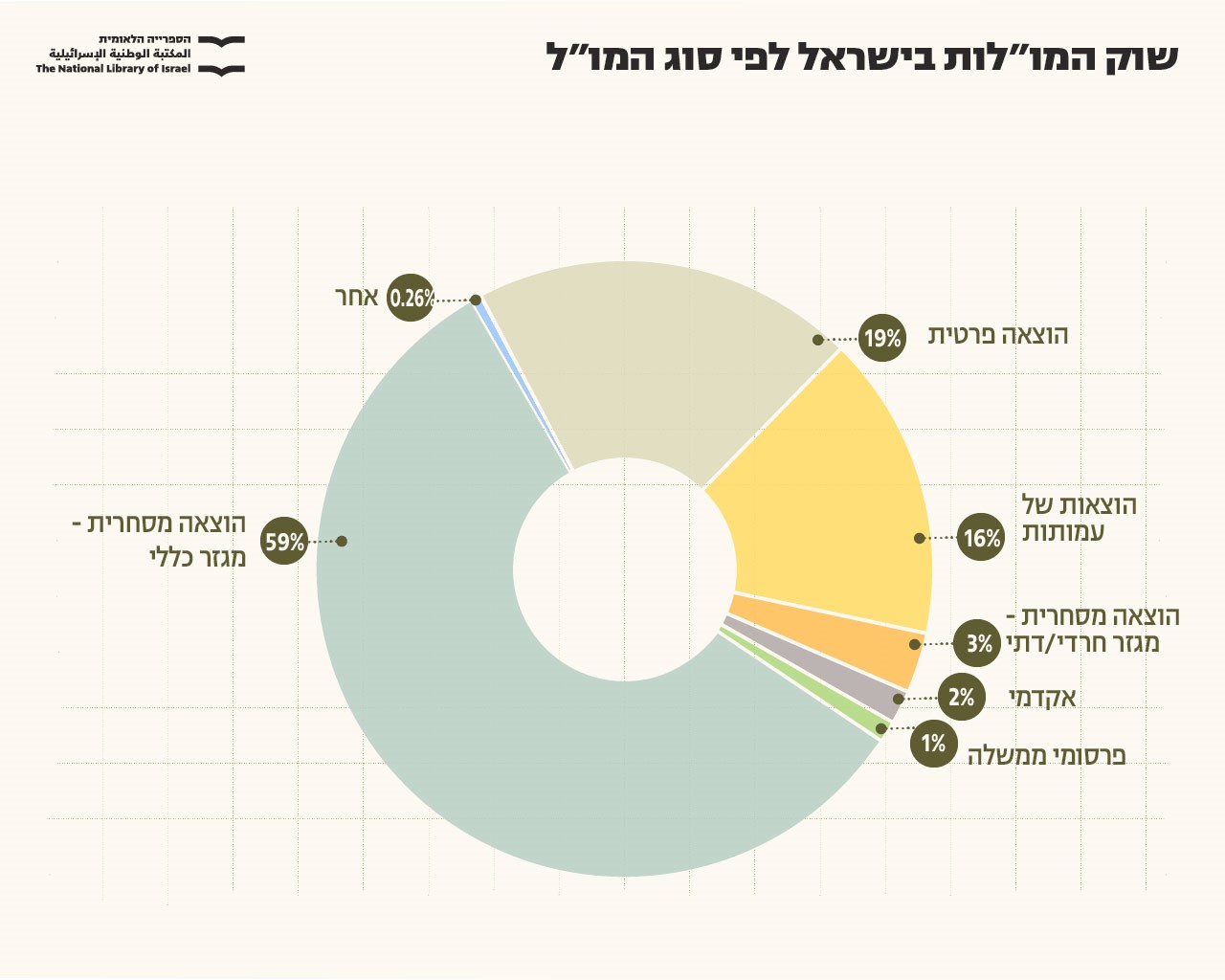 עמותות הוציאו 16% מהספרים; פרסומים ממשלתיים מהווים % 1.3 ופרסומים אקדמיים מהווים 1.7% מכלל ההוצאות לאור והפרסומים.