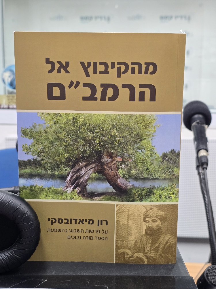ספרים רבים נכתבו על הגותו של הרמב"ם, אבל נדמה שהספר מהקיבוץ אל הרמב"ם: על פרשות השבוע בהשפעת הספר מורה נבוכים שכתב רון מיאדובסקי שונה בנוף. שוחחתי עם רון על ספרו, ספר הגות בשפה עממית על פרשות השבוע שנכתב אחרי שנים רבות של קריאה בכתבי הרמב"ם, בעיקר במורה נבוכים. "הרמב"ם לימד אותי שהשאלות הן לא סימן לכפירה, אלא הן סימן לאמונה בוערת ולצמא להתפתחות", אומר רון. הספר (הוצאת ספרי ניב) עוסק בענייני דת ומדע, בהשגחה, בנבואה, בחינוך, במוסר, בחירות, במצוות, באהבת ישראל, במלחמות אחים ובנושאים אחרים.