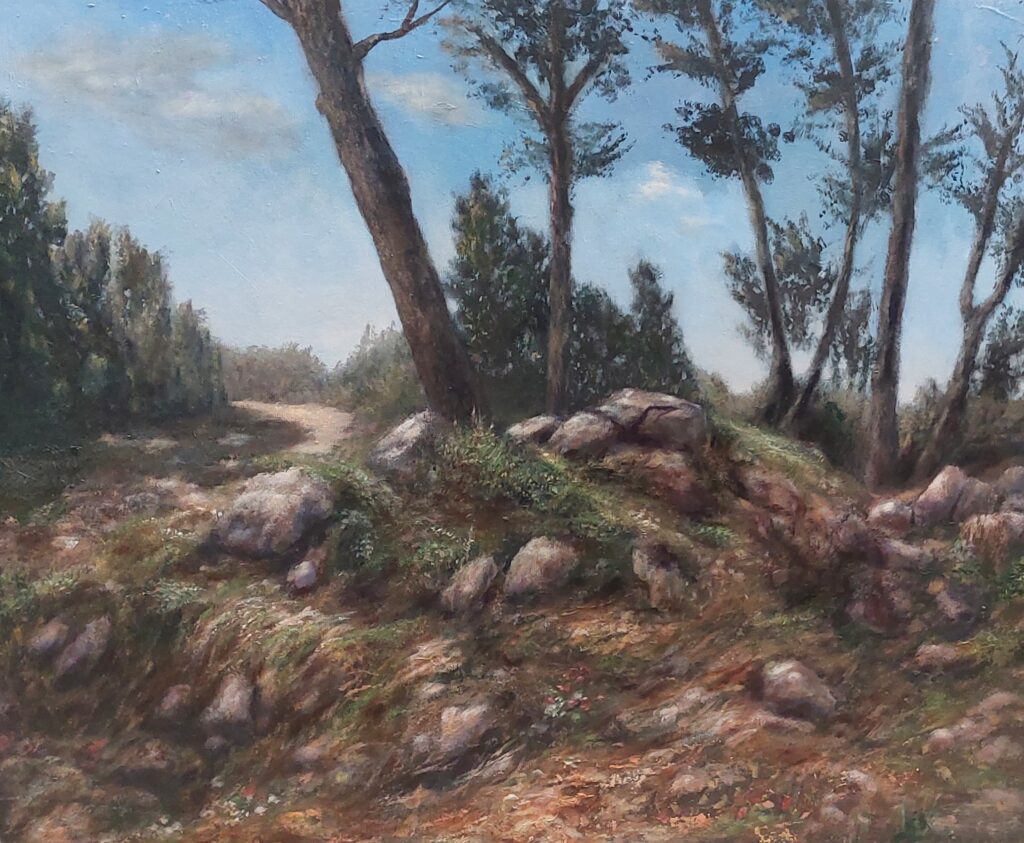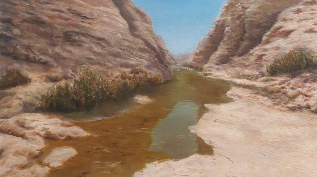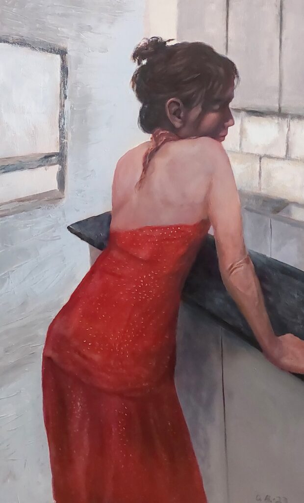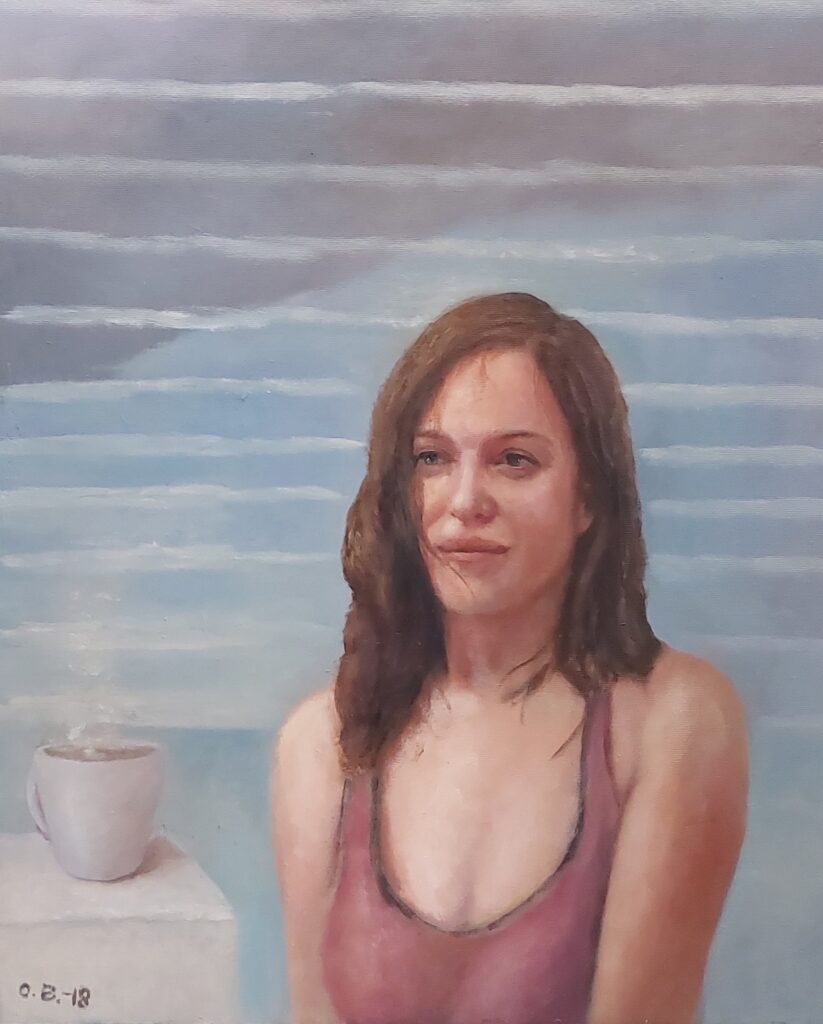 "הטכניקה שלי: צבעי שמן כאשר את הרישום אני עושה כבר בצבע תוך כדי תיאור האזורים ומיקומי האובייקטים בציור".