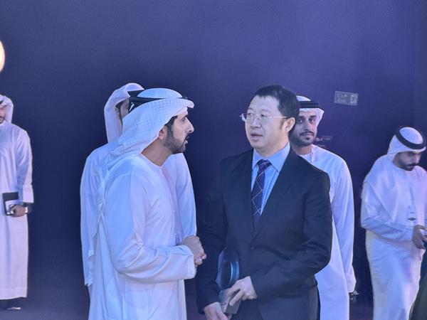 שייח' חמדאן בן מוחמד בן ראשיד אל מכתום, יורש העצר של דובאי, סגן ראש הממשלה ושר ההגנה של איחוד האמירויות הערביות, עם ד"ר טוני האן, מייסד ומנכ"ל WeRide(צילום WeRide Inc.)