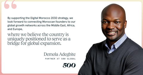 דמולה אדגביטה, שותף ב-500 Global, אשר מוביל את השקעות ההון של החברה ברחבי אפריקה, הדגיש כיצד הפעילות מתבססת על למעלה מעשור של עבודה אותה קיימה 500 Global ברחבי היבשת. לאדגביטה למעלה -20 שנות ניסיון באקוויטי פרטי, בבנקאות השקעות ובהון סיכון, ולדבריו סגירת פער הצמיחה של אפריקה מחייב חיזוק של אקוסיסטמות בשלב מוקדם תוך הבטחה כי המייסדים יוכלו לגשת אל היכולות וההון המתאימים תוך כדי המדרוג. "מעבודתנו בשווקים המתפתחים עולה כי אקוסיסטמות מתפתחות בקצב מואץ כאשר מנהיגות במגזר הציבורי וכן מומחיות במגזר הפרטי מתקדמות באופן מתואם", הוא אמר. "אנו תמוכים באסטרטגיה Digital Morocco 2030 מתוך שאיפה לחבר את המייסדים במרוקו אל רשתות הצמיחה הגלובליות שלנו ברחבי המזרח התיכון, אפריקה ואירופה, בארצות שלדעתנו ממוצבות במקום ייחודי שיאפשר להן להוות גשר להתרחבות גלובלית".