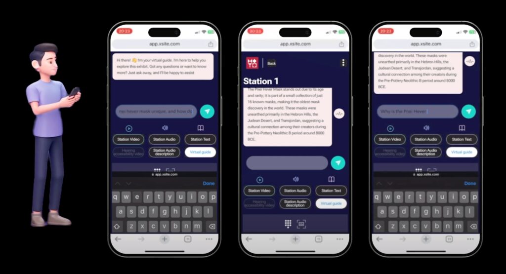 לצד זה, פתרון הדגל של Xsite מציע מדריך מבוסס בינה מלאכותית שיודע לענות על שאלות בזמן אמת מתוך התוכן המקורי של האתר או המוזיאון. התשובות מותאמות אישית לגיל, עניין, והקשר – בשיחה קולית או טקסטואלית, ובשפות שונות.